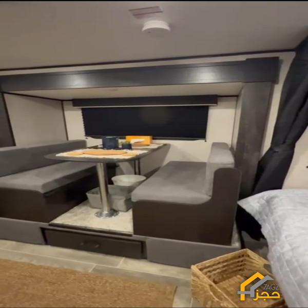 يوجد بالكرفان سريركبير+سريرين اطفال +مطبخ +خيمتين +جلسه ارضيه مرتفع
